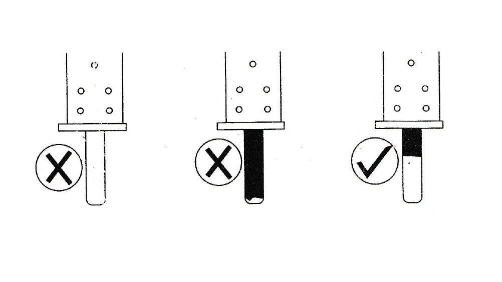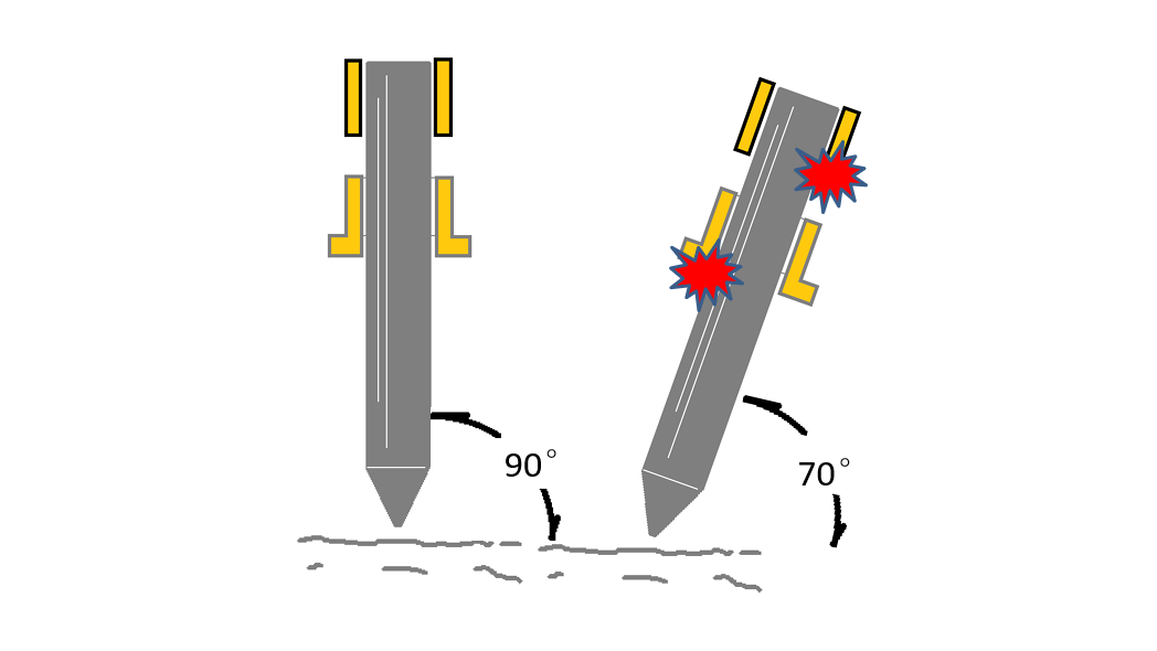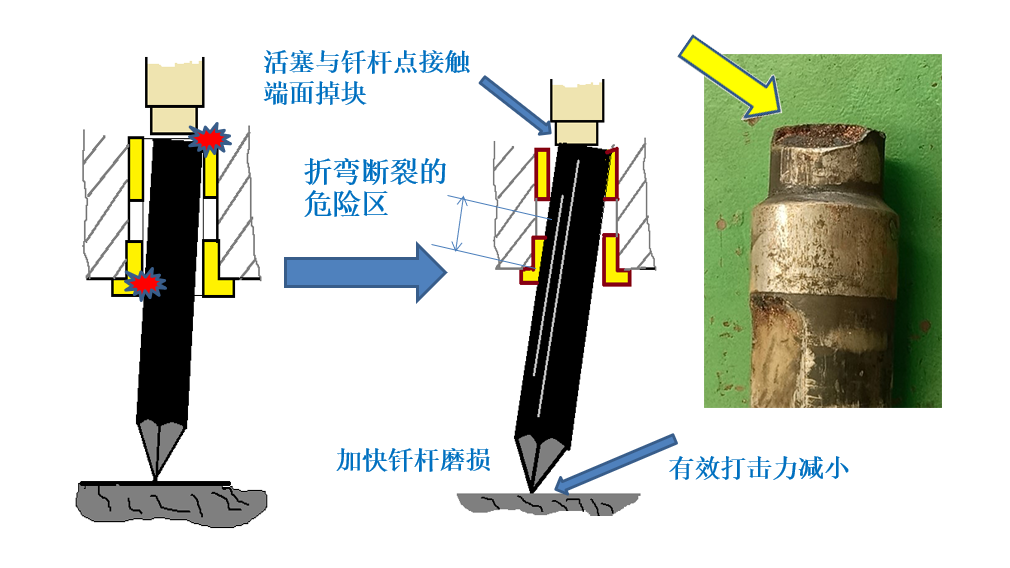 斜打会减小有效打击力使钎杆承受很大的折弯力。