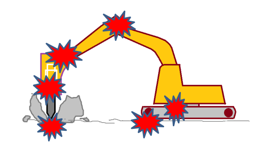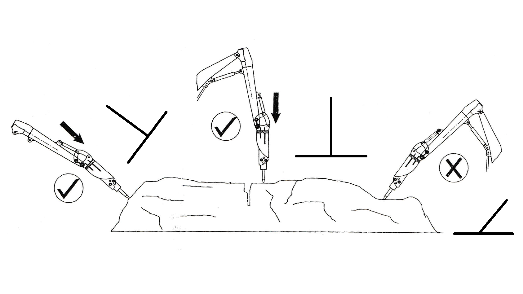 工作时钎杆应尽可能与被破碎物表面成90°,以减少或避免钎杆受过多折弯力,同时降低钎杆与衬套之间的磨损,延长使用寿命。