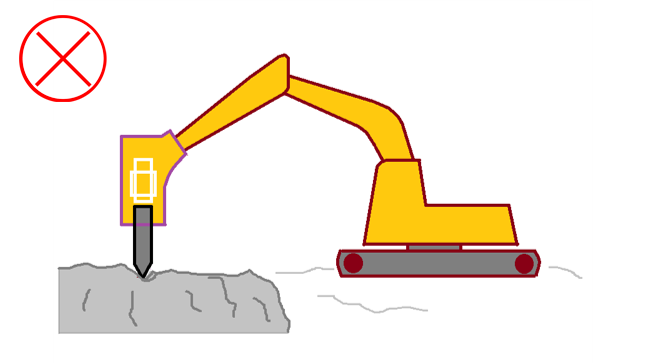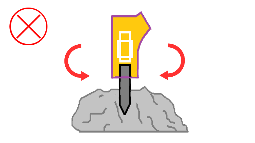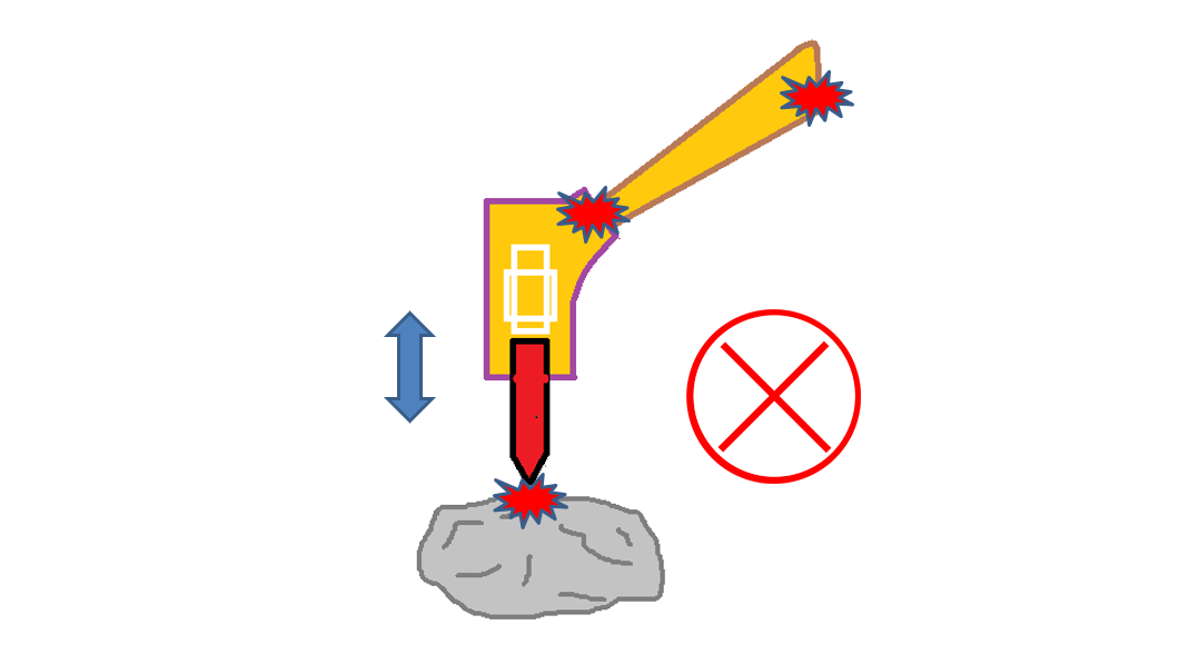 不要试图将破碎锤钎杆当做撬棍来使用,当钎杆承受过大折弯力时,钎杆就会在易断点折断。