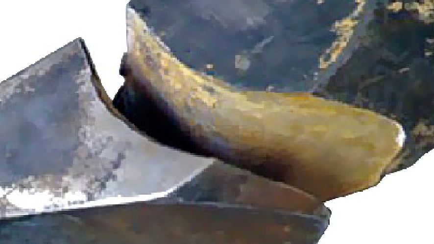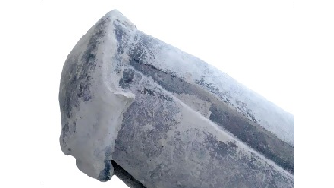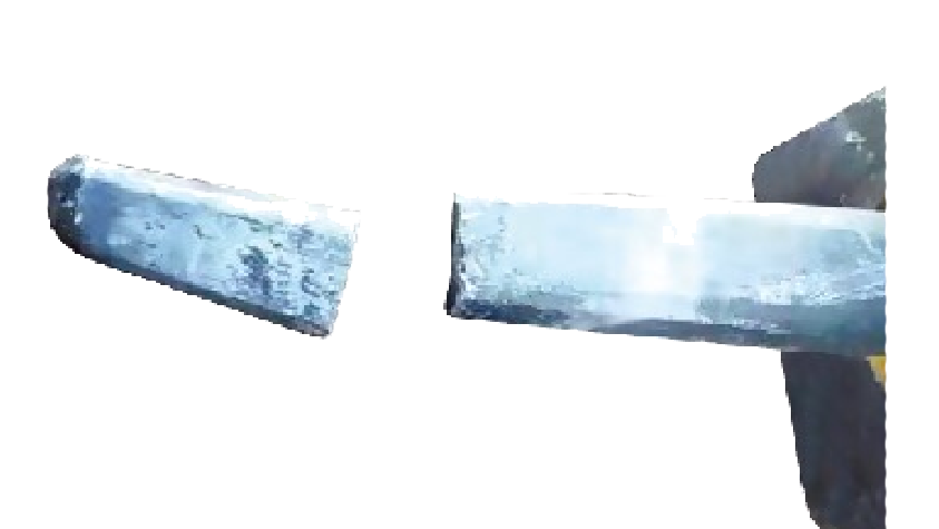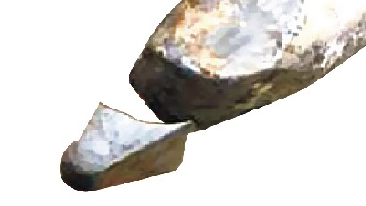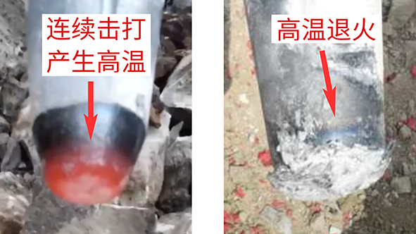 因长时间在同一处打击钎杆,能量聚集导致钎杆升温,造成退火硬度降低,致使尖部损坏出现以下类似情况之一的不质保。